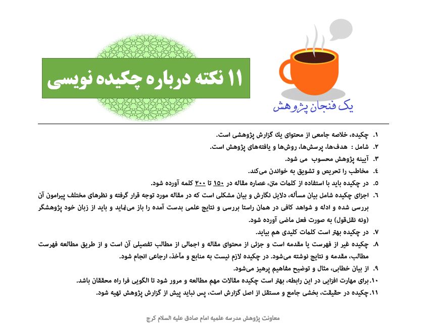 یک فنجان پژوهش، چکیده